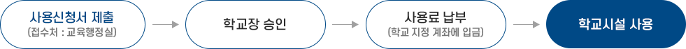 - 학교시설 사용자는 관련 규정을 숙지하고 신의에 따라 성실히 사용자로서의 주의의무를 이행하여야 합니다